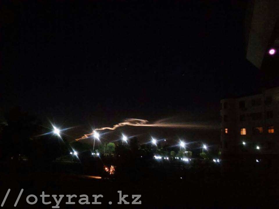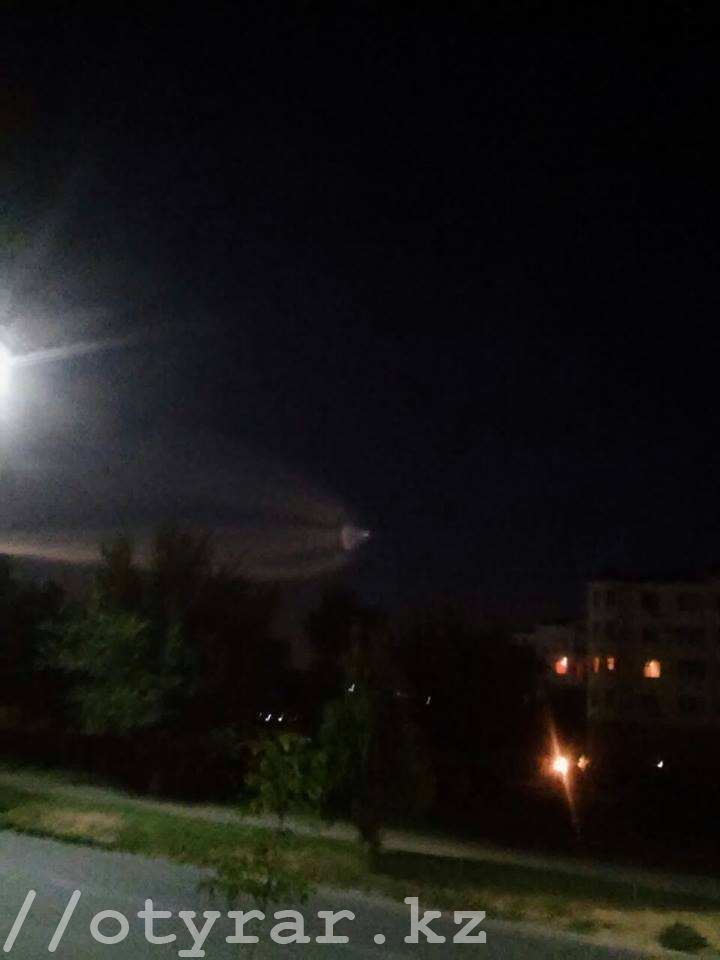 Летящий по ночному небу странный объект напугал шымкентцев. Конусообразный объект медленно двигался по ночному небу, оставляя за собой яркий дымный след. Особенно хорошо объект смогли разглядеть жители микрорайона «Нурсат».