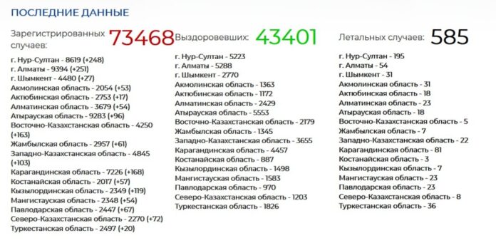 Всего в стране подтверждено 73 468 случаев коронавируса
