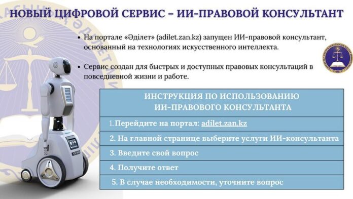 Агент-искусственный интеллект создан для того, чтобы жители страны могли оперативно получать первичную консультацию по различным вопросам, связанным с законодательством Республики Казахстан.