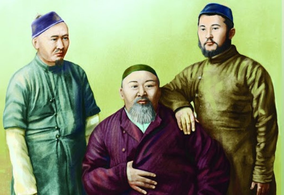 Абай с сыновьями Акылбаем (слева) и Турагулом (справа)
