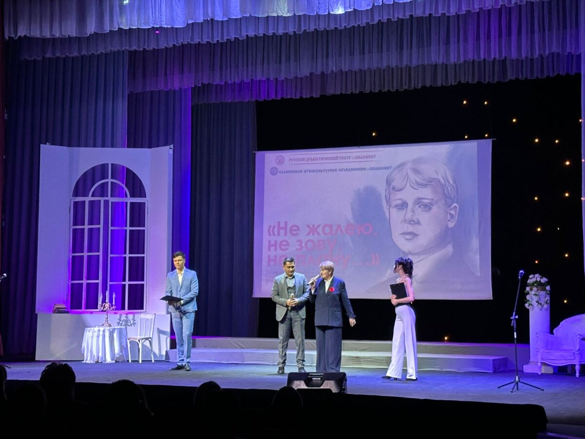 Первое культурное мероприятие в первый день октября провел Русский драматический театр совместно со Славянским этнокультурным объединением Шымкента. На сцене драмтеатра была показана литературно-музыкальная композиция «Не жалею, не зову, не плачу…» И посвящена она была, как нетрудно догадаться, поэту Сергею Есенину в связи с 130-й годовщиной со дня его рождения. Прошло столько лет после трагической смерти поэта, а его пронзительная лирика до сих пор трогает души людей.