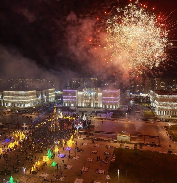 В Туркестане на площади Административно-делового центра прошло торжественное мероприятие «Сияй, новогодняя ёлка!», давшее официальный старт новогодним праздникам в регионе.