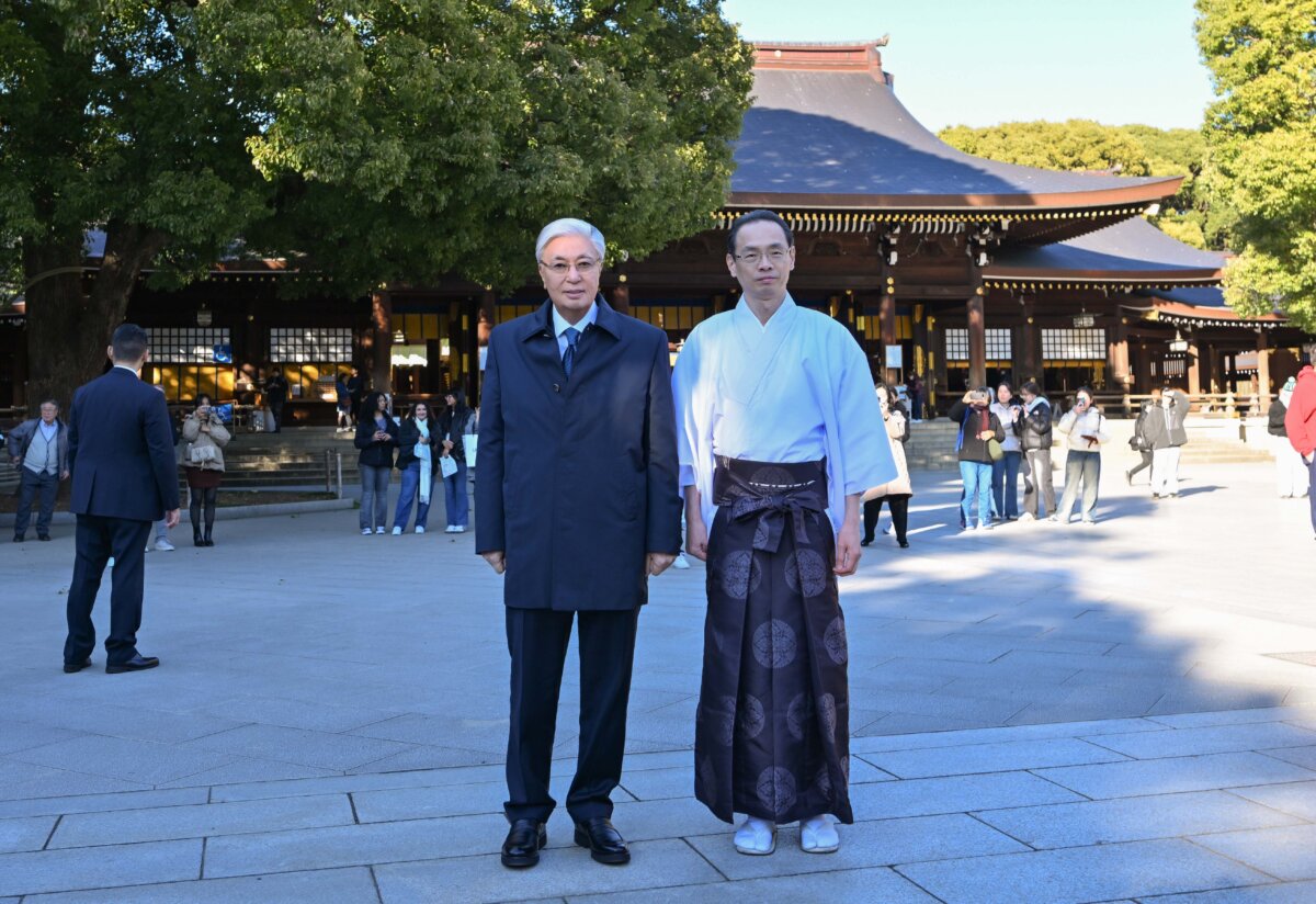 Естественно, в рамках визита не обошлось без посещения одного из символов Японии – храма Мэйджи Джингу. Этот императорский комплекс с богатой историей и культурным значением оставил сильное впечатление на Главу государства. Президент оставил запись в книге почетных гостей и пожелал Стране восходящего солнца процветания.