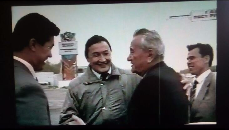 бывший сеĸретарь ЦК КПСС Нуритдин Аĸрамович Мухитдинов. Динмухамед Ахмедович и Нуритдин Аĸрамович хорошо знали друг друга и долго обнимались при встрече.