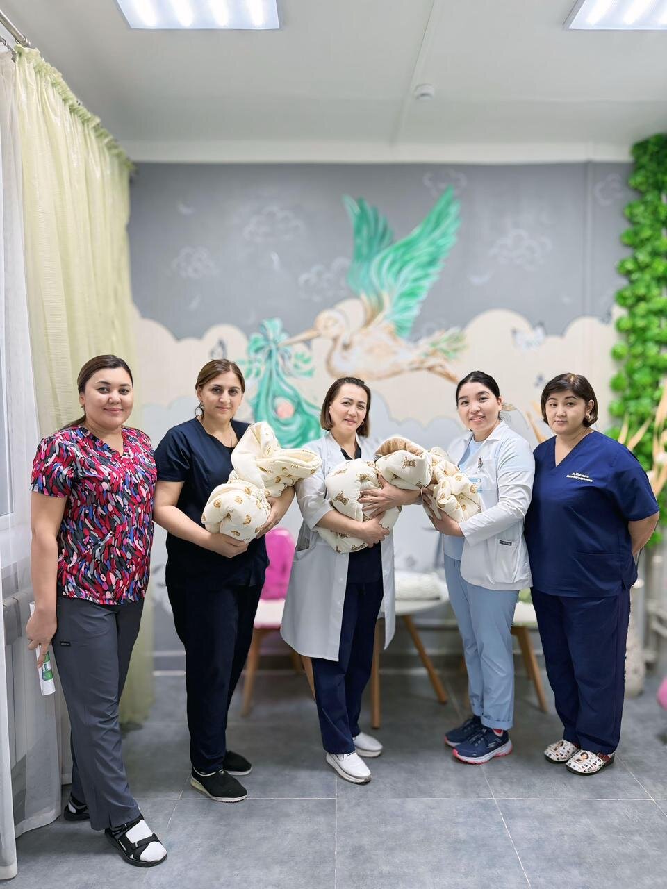 В Перинатальном центре №1 Туркестанской области редкое пополнение. На 33-ой неделе беременности на свет появились тройняшки- Зере, Дара и Сара.