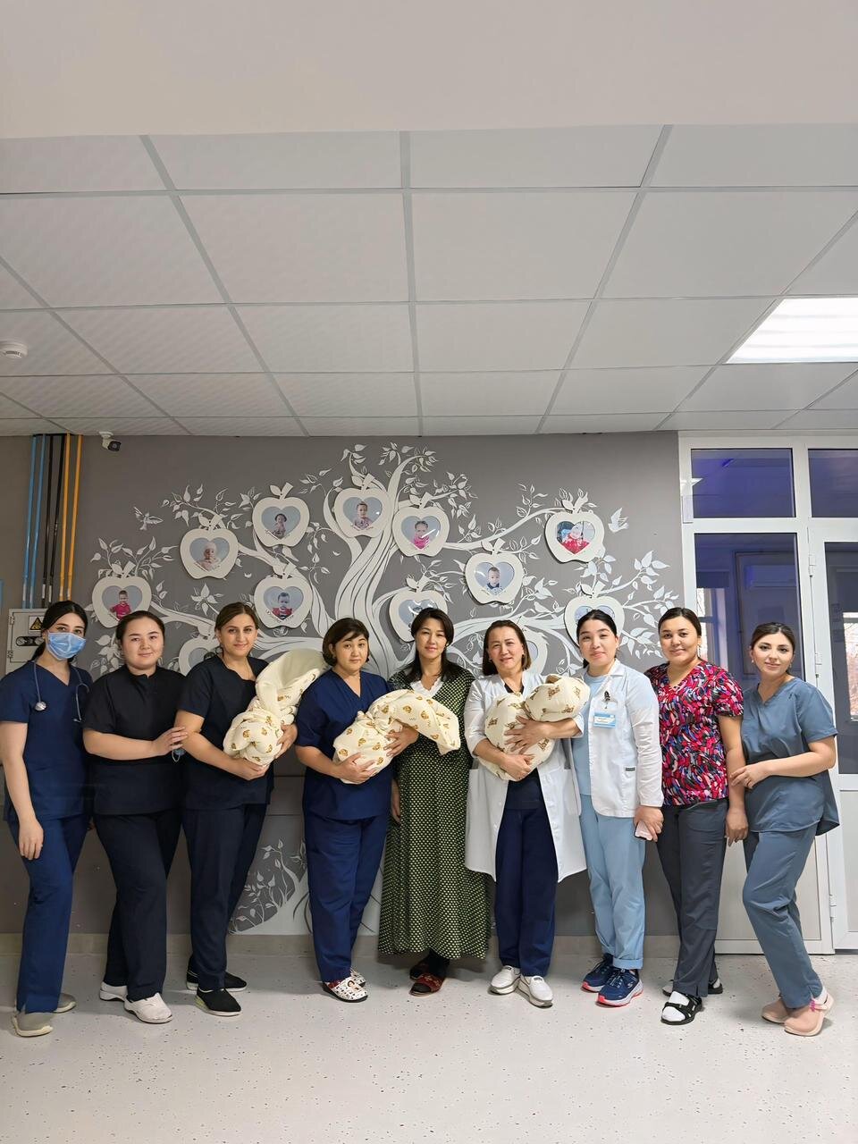 Мама — жительница Сарыагашского района. Вес новорождённых при рождении составил 2400, 2230 и 2060 грамм. В первые сутки девочки находились под наблюдением врачей в отделении патологии и дышали с помощью аппарата искусственной вентиляции лёгких, однако уже со второго дня начали самостоятельно дышать.