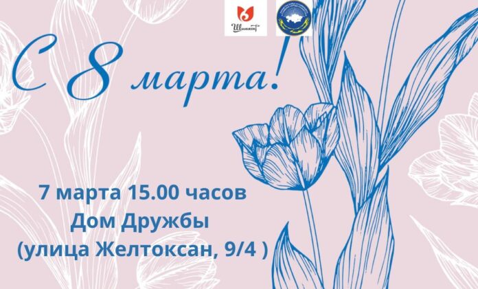 Праздничная встреча состоится 7 марта в 15:00 в зале Дома дружбы по адресу: улица Желтоксан, 9/4.