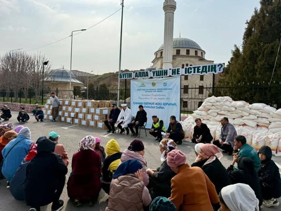 В рамках акции 200 малообеспеченным семьям были вручены продуктовые корзины. Мероприятие началось с чтения Священного Корана.