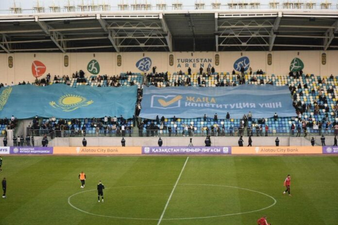 На стадионе «Туркестан Арена» состоялся матч первого тура Казахстанской Премьер-лиги между футбольными клубами «Актобе» и «Тобол». В преддверии игры организаторы провели специальную акцию с участием молодежи в поддержку предстоящего референдума.
