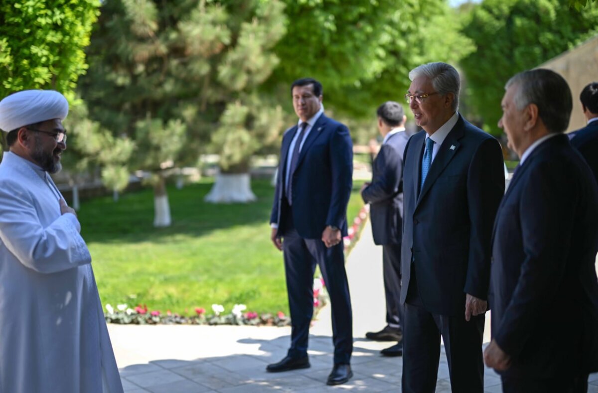 Касым-Жомарт Токаев и Шавкат Мирзиёев тепло побеседовали с посетителями мемориального комплекса и сделали совместное фото.
