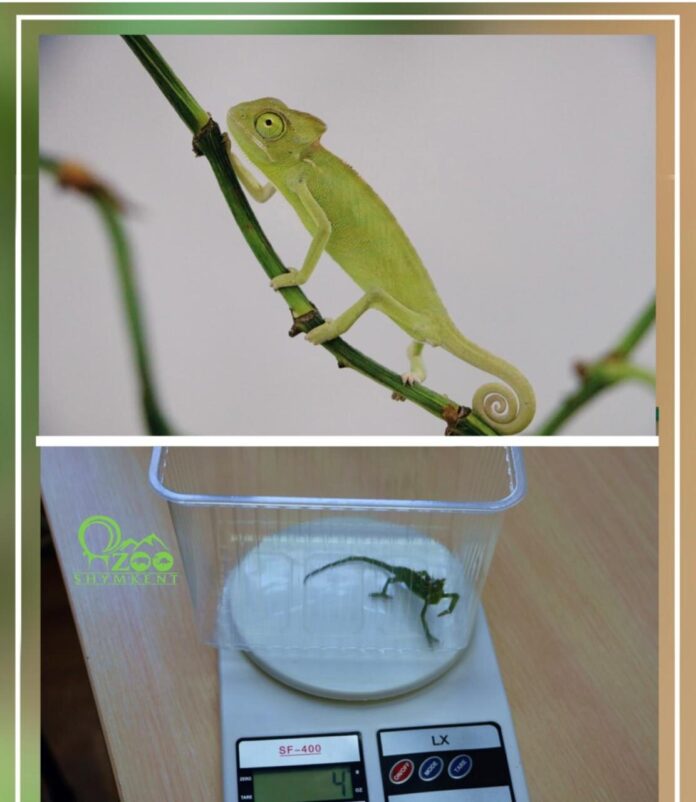 В зоопарке Шымкента произошло пополнение — на свет появились восемь маленьких хамелеонов. Их яйца развивались в специальном инкубаторе в течение 5,5 месяцев, после чего в декабре успешно вылупились полностью сформировавшиеся особи.