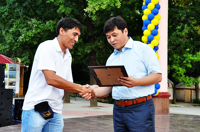 Оператору ТК «Отырар» Бахадыру Тажибаеву вручают благодарственное письмо